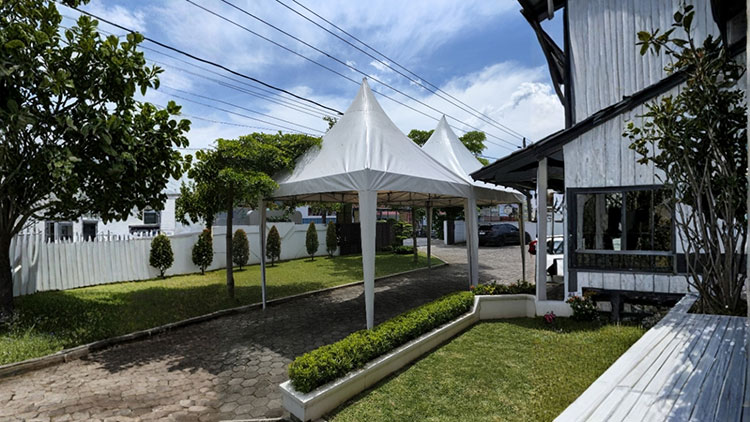 Tenda ukuran 4x6m dengan plafon rata, tanpa dinding